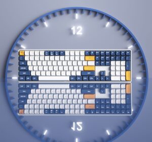 The GD108 Mechanical Keyboard delivers a full 110-key layout with dual-mode connectivity (Wired & 2.4G), PBT dual-color keycaps, and hot-swappable switches. Designed for maximum productivity, precision typing, and gaming performance — available in Brown Sugar, Milky Brown, and Starry Blue.